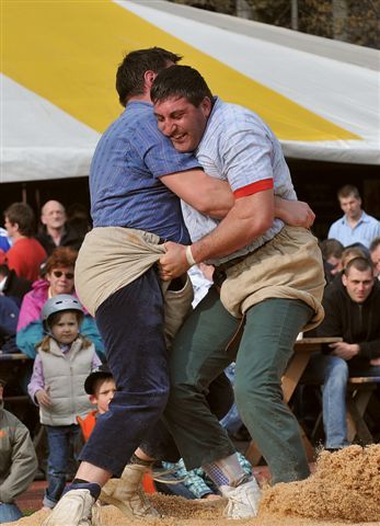 Frühjahrsschwinget Cham ZG, 11.04.2010Der Schlussgang zwischen Bruno Müller und Ady Tschümperlin endete unetschieden. retour à l‘aperçu