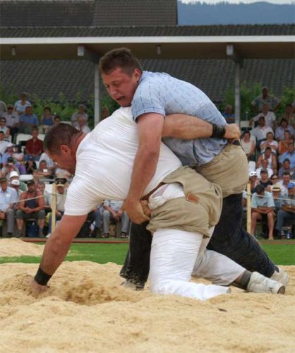 Jörg Abderhalden bezwingt Stefan Fausch nach einem intensiven Gang in der sechsten Minute mit Kurz-Lätz.