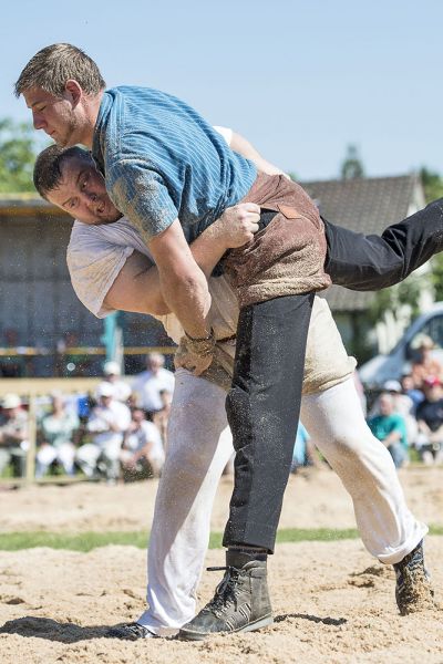 Der Schlussgang zwischen dem Sieger, Beni Notz (l, Güttingen) und Roger Rychen (r, Mollis).