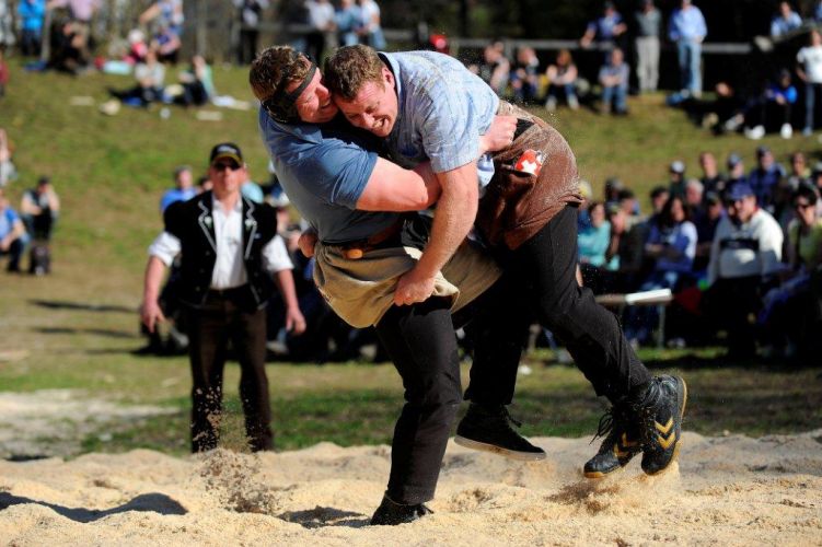 Simon Anderegg (rechts) bezwingt im Schlussgang seinen Meiringer Klubkameraden Matthias Glarner.