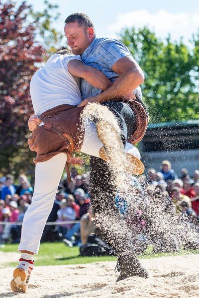Im Schlussgang gewinnt Nöldi Forrer nach 20 Sekunden gegen den Ueberraschungsmann Christof Schweizer mit Gammen und Nachdrücken am Boden