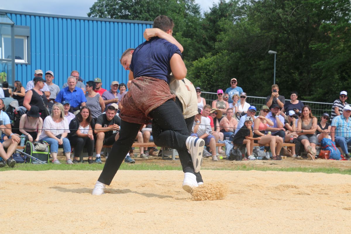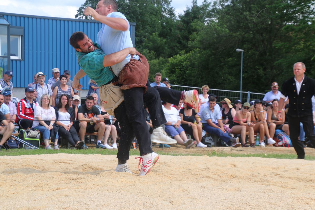 La passe finale oppose deux des favoris. D’un côté nous retrouvons Remo Käser, invité bernois, qui a remporté ses cinq premiers combats et vainqueur de la Romande 2018 à Couvet. Face à lui, on retrouve Lario Kramer, qui quant à lui a remporté quatre combats et partagé l’enjeu lors de sa première passe face à l’invité Joël Strebel. Après plus de trois minutes de combat, le lutteur bernois réussit, après un gammen, à mettre les épaules de son adversaire sur le dos. A la deuxième place, nous retrouvons le jeune espoir de Vallon (FR), Romain Collaud, qui remporte cinq combats et perd contre le futur vainqueur en quatrième passe. Le lutteur invités de la Suisse centrale, Christian Schuler, prend le troisième rang. Deux jeunes lutteurs remportent leurs premiers lauriers de leur carrière ; Christoph Baeriswyl de Planfayon et Sven Tschachtli de Chiètres.