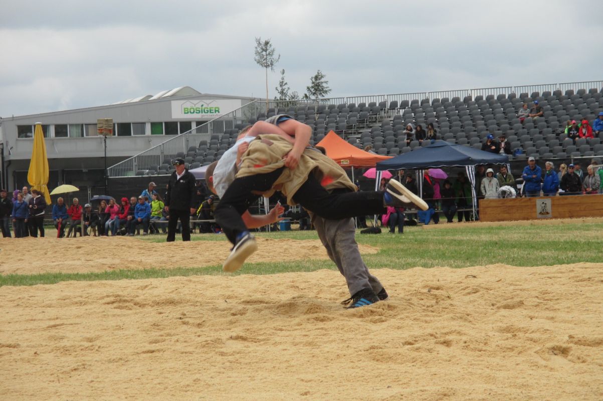 Bei wechselnden Wetterbedingungen, aber idealem Schwingfestwetter zeigten die Nachwuchsschwinger sportliche Schwingkost vom Feinsten.