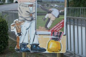 • OK Präsident Ivano Brunoni Christian Stucki mit seinem Lebendpreis und der Spenderfirma Willi Gerüste