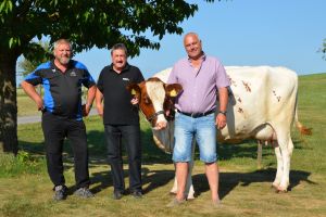 OK PräsidentClemans Gurtner, Spender Rico Zanganaro HG Comercial, Kuh MAYRA und Gabenchef Pius Zehnder