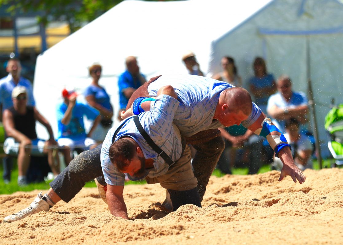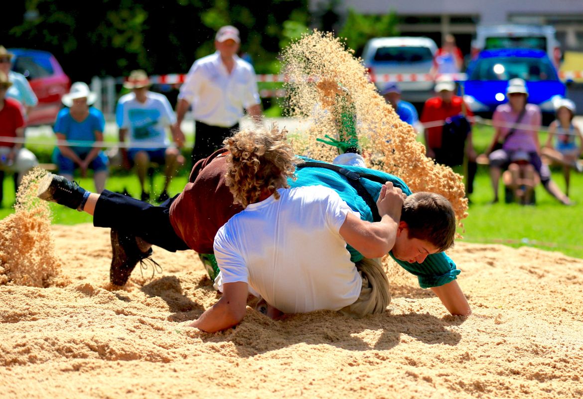 Plus de 500 spectateurs sont venus voir les lutteurs à l'oeuvre sur la place de fête au centre du village avec vue sur un magnifique panorama.