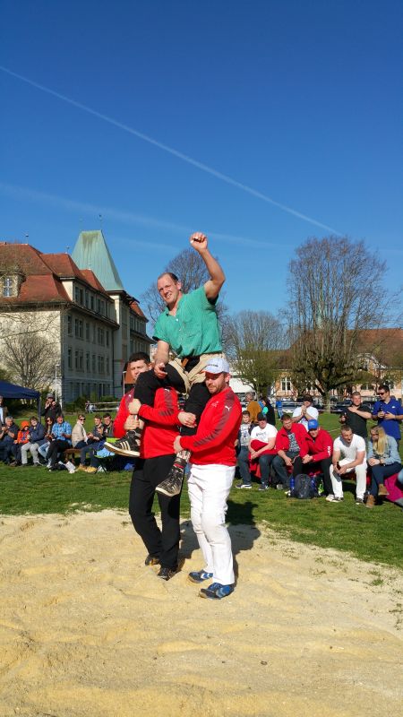 Vor 650 Zuschauern besiegt Bruno Gisler Henryc Thoenen nach 8 Minuten und 50 Sekunden durch eine Kurz-Hüfter Kombination.
