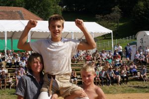 Jahrgänge 01/02: Bachmann Sämi erbt den Sieg, da Odermatt Adrian und Imobersteg Matthias stellen.