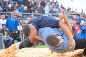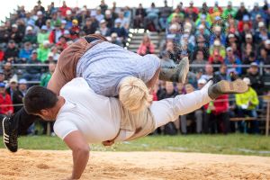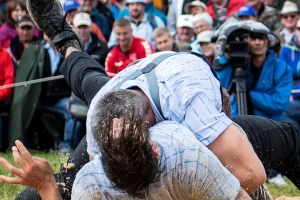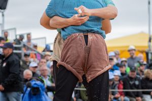 • Gisler Bruno - er greift zum letzten Mal in das Wettkampfgeschehen ein - hier im ersten Gang gegen Rychen Roger