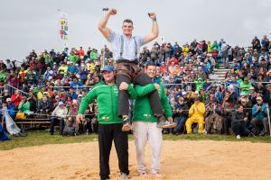 • Giger Samuel lässt sich feiern. Er gewinnt nach 20 Sekunden