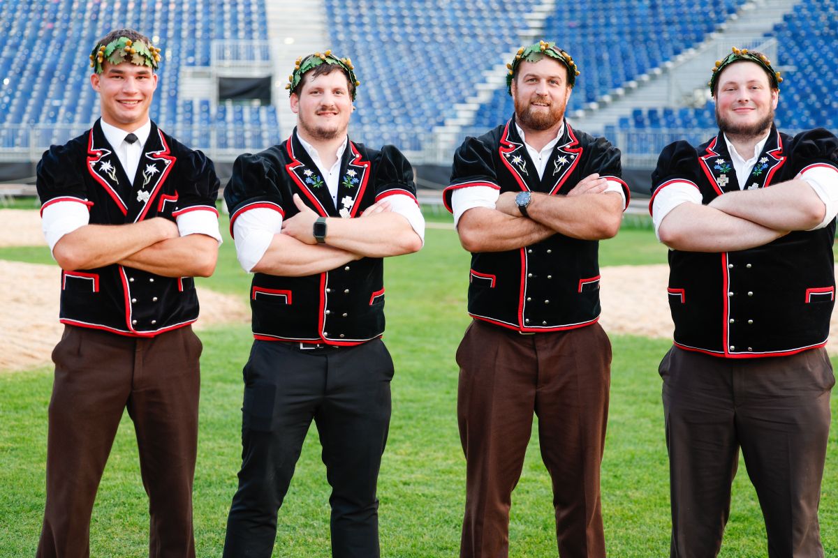 11.08.2024, Bernisch-Kantonales Schwingfest Burgdorf, Vier Kranzgewinner des Triple in Burgdorf, Moser Michael, Schenk Patrick, Aeschbacher Matthias, Roth Philipp