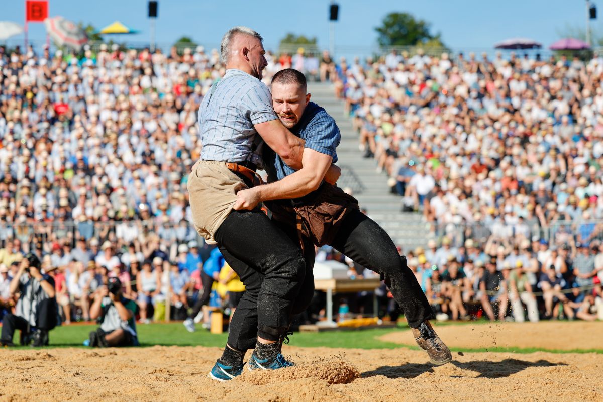 11.08.2024, Bernisch-Kantonales Schwingfest Burgdorf, Burger Matthieu (l.) - Aeschbacher Matthias (r.)