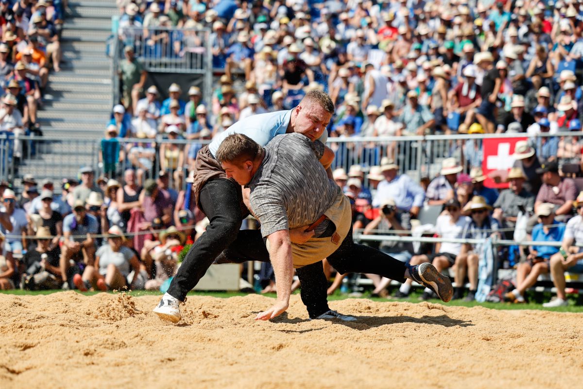 11.08.2024, Bernisch-Kantonales Schwingfest Burgdorf, Giger Samuel (l.) - Staudenmann Fabian (r.)