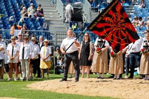 Zwischenzeitlich wurde noch ein Geburtstagsständli mit der ganzen Arena gesungen. Der Geschäftsstellenleiter des Eidg. Schwingerverbandes Rolf Gasser wird heute 11. August 64 Jahre alt. Herzliche gratulation. Recht viele Zuschauer verfolgen trotz des sehr heissen Wetters den traditionellen Festakt in der Arena. Die Kantonalfahne mit den Gauverbandsfahnen flankieren die OK Mitglieder von Tramelan und Burgdorf und den Kantonalvorstand. So ein Festakt darf und muss Platz im Tagesprogramm haben und somit hat auch das Einteilungskampfgericht genügend Zeit den sechsten Gang fair zusammen zu stellen. Die kernigen Worte von Burgdorfs OK Präsident Francesco M. Rappa, die Überregulierung von Festanlässen unserer Politik nicht zu gutieren wurde mit einem grossen Applaus bestätigt. Menschen sollen zusammengeführt werden , nicht getrennt.