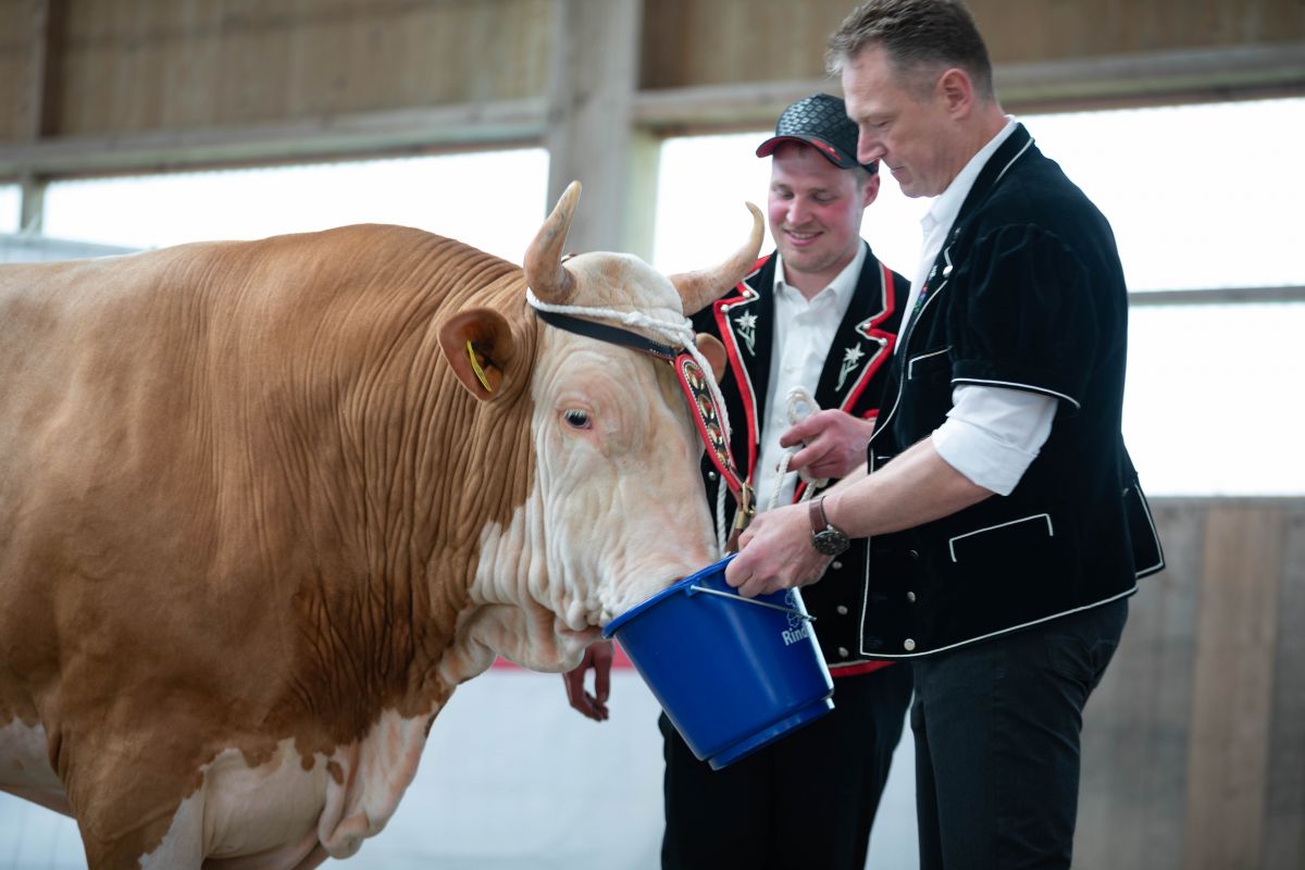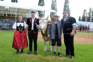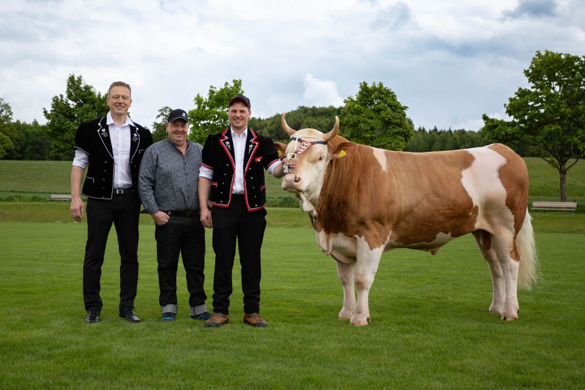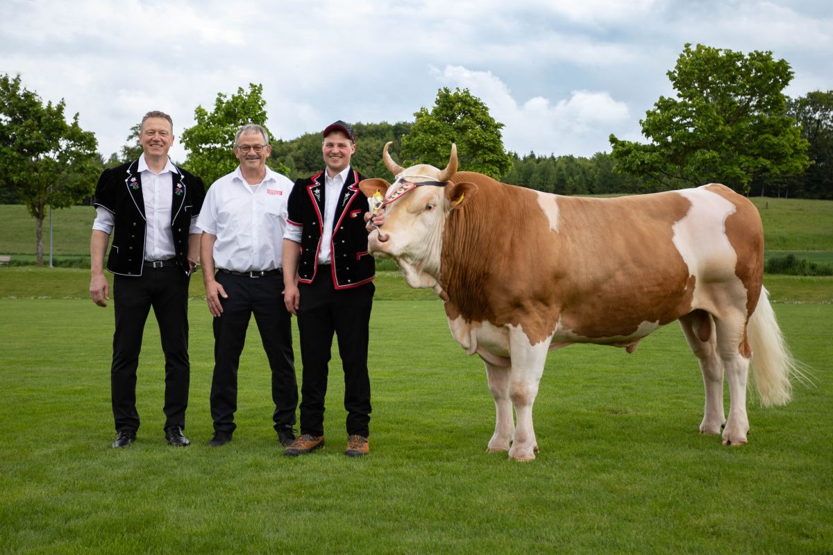 Sieger Muni Lupin, mit Muni-Götti Käser Adrian, Blatter Andreas (OK NWS23), Besitzer Gerber Christoph (RS)