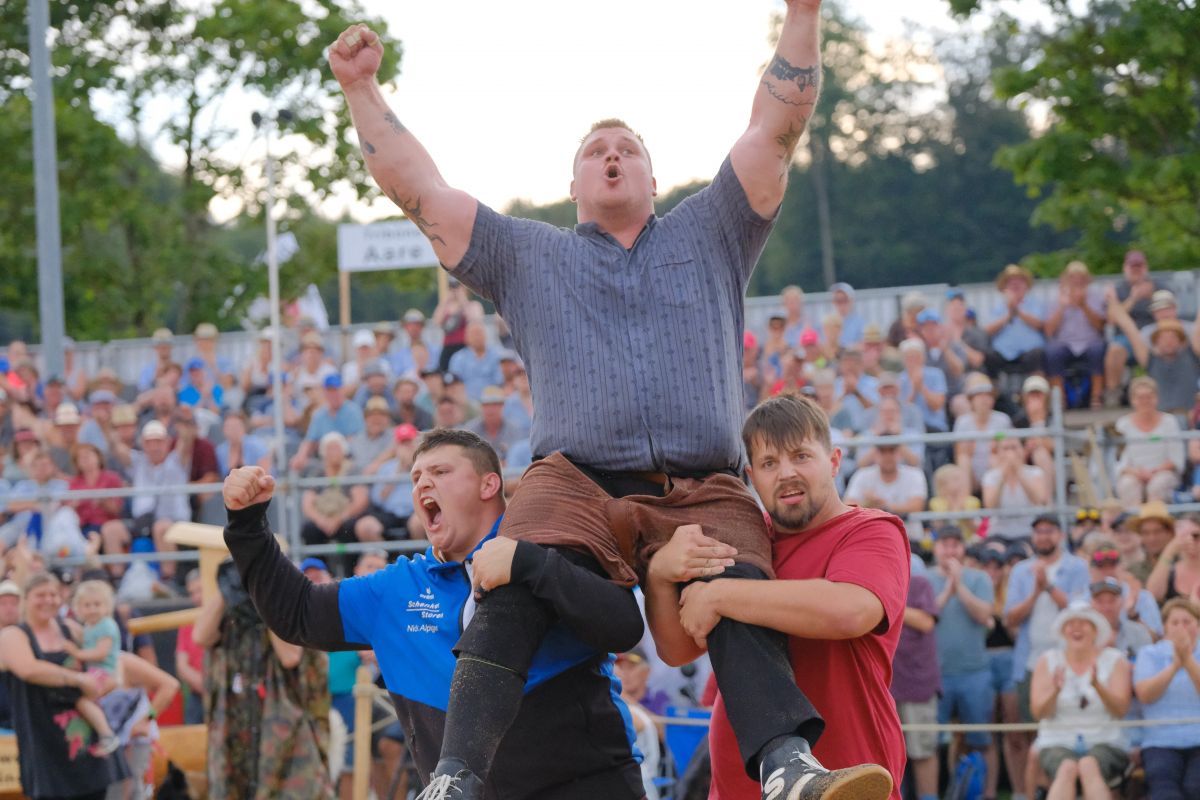 «Jabadabadu», ist Räbmatter Patricks Markenzeichen wenn er einen Kranz gewinnt. An diesem Wochenende war sein Siegesschrei emotionaler und kräftiger als sonst. Der gutmütige Kraftprotz aus Uerkheim durfte den Festsieg am Nordwestschweizerischen Schwingfest feiern. Sein letzter Festsieg liegt knapp acht Jahren zurück. Mit «Räbi» durfte auch Aeschbacher Matthias jubeln, er sicherte sich den Schlussrang 1b und ist somit Co-Festsieger.