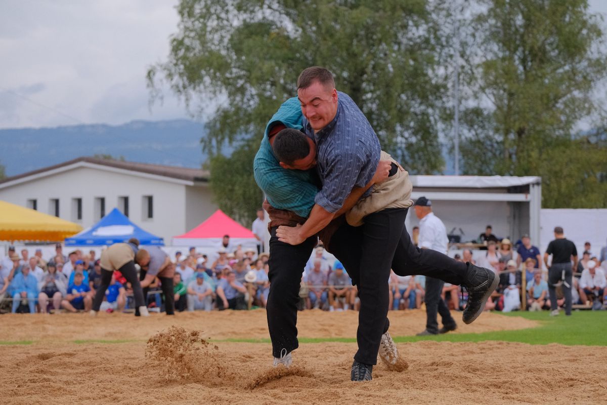 Deitingen war am Sonntag, 13. August 2023 Austragungsort des 115. Nordwestschweizerischen Schwingfestes. Das Organisationskomitee um OK-Präsident Markus Grenacher hat einen hervorragenden Job gemacht und in einer liebevoll hergerichteten Arena konnten 4‘420 Zuschauer die spannenden Zweikämpfe verfolgen. Im Sägemehl haben 112 Schwinger aus der Nordwestschweiz und je zwei Gäste-Schwinger aus jedem Teilverband um die NWS-Kränze und den Siegerstier Lupin gekämpft. Trotz der Absage von Schwingerkönig Wicki Joel stellten die Gäste mit Aeschbacher Matthias, Walther Adrian und Schneider Domenic drei hochkarätige Athleten, die versuchten den Festsieg in ihren Teilverband «zu entführen». Das Schwingfest startete für die Gäste verheissungsvoll: Schneider (gegen Strebel Joel), Aeschbacher (gegen Alpiger Nick) und Walther (gegen Räbmatter Patrick) konnten ihre ersten Gänge gewinnen und die Hoffnungen der Nordwestschweizer auf einen Festsieger aus eigenen Reihen, erlitt einen ersten Dämpfer. Lediglich Lüscher Sinisha konnte in den Spitzenpaarungen einen Sieg für die einheimischen Schwinger verzeichnen. Auch zur Mittagspause zeigte die Rangliste ein eindeutiges Bild: Aeschbacher und Schneider waren die einzigen beiden Schwinger mit drei gewonnenen Gängen auf ihrem Notenblatt. Im vierten Gang entschied sich das Einteilungsgericht für ein Direktduell dieser beiden Athleten, welches ohne Resultat endete.