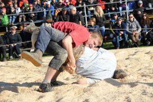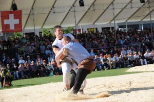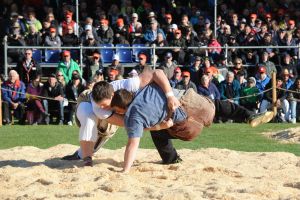 Bieri Marcel aus Edlibach gewinnt nach 3:45 Minuten mit Kreuzgriff gegen den Einsiedler Schuler Christian und kann so nach 14 Jahren den Festsieg wieder einmal im Zugerland behalten.