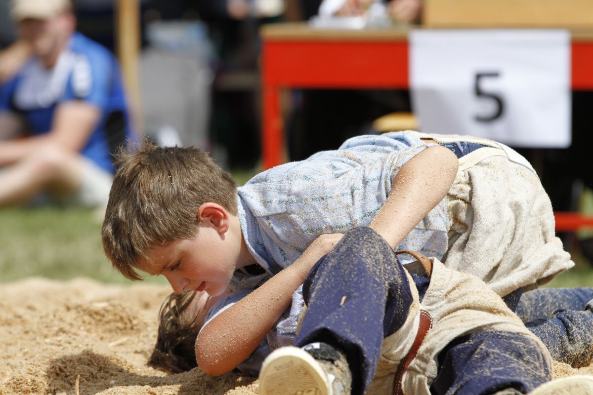 Gisler Timo (2009), Rumisberg, Schwingklub Solothurn & Umgebung gegen Russo Giulio (2009), Suhr, Schwingklub Aarau. Russo Giulio gewinnt in 1.42 Min. mit Kopfgriff/Kurz.
