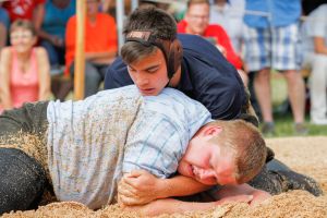 Borer Timon (2007), Grindel, Schwingklub Dorneck-Thierstein-Laufental gegen Scherz Valentin (2007, Liesber, Schwingklub Dorneck-Thierstein-Laufental. Scherz Valentin gewinnt in der ersten Minutemit Armhebel am Boden.