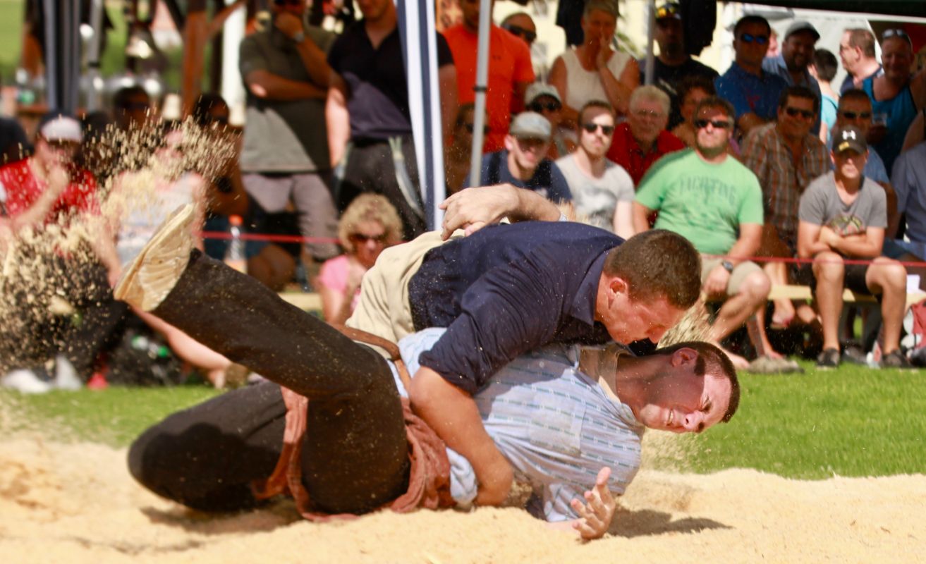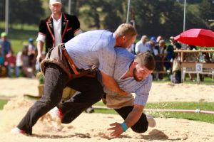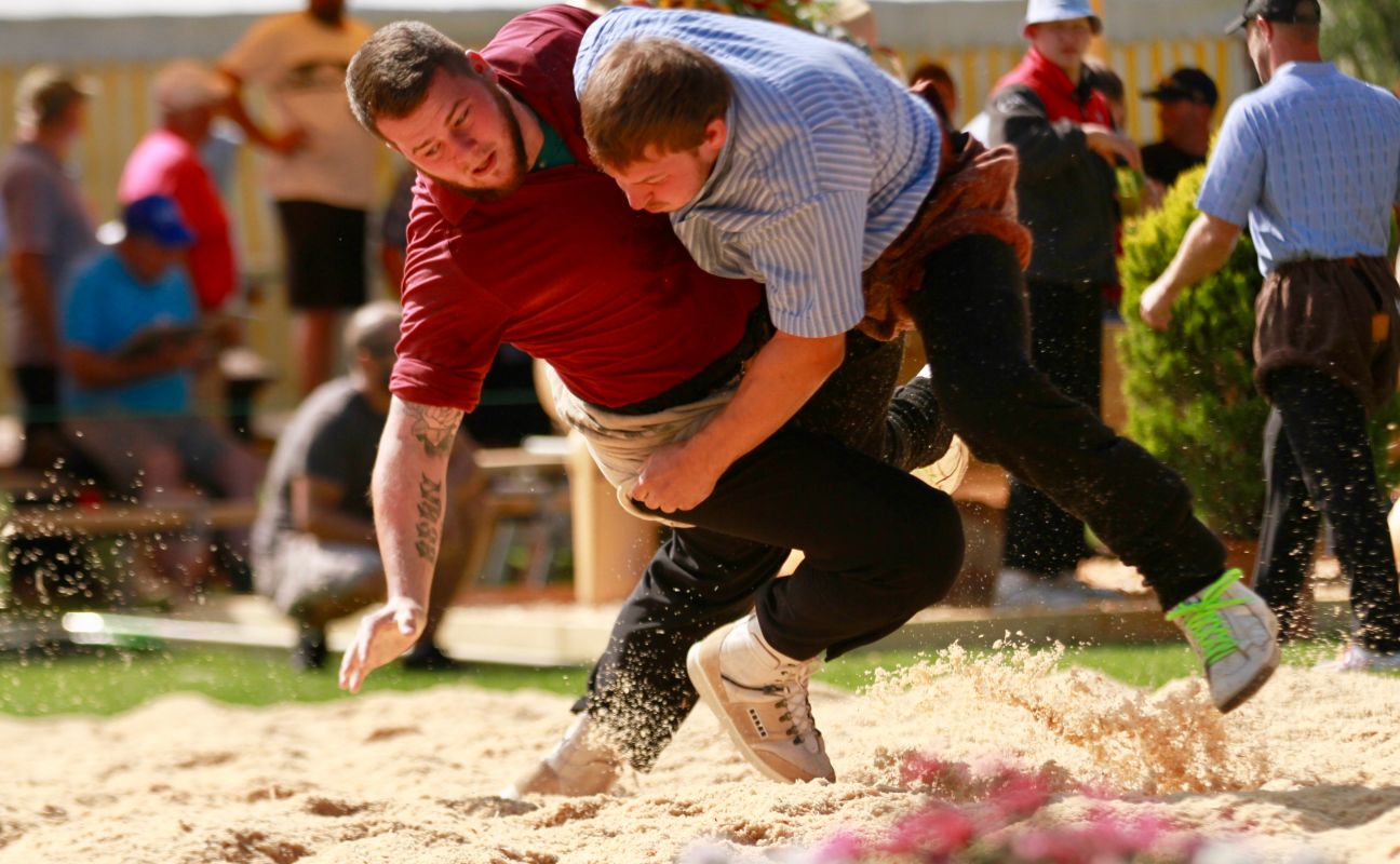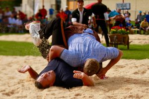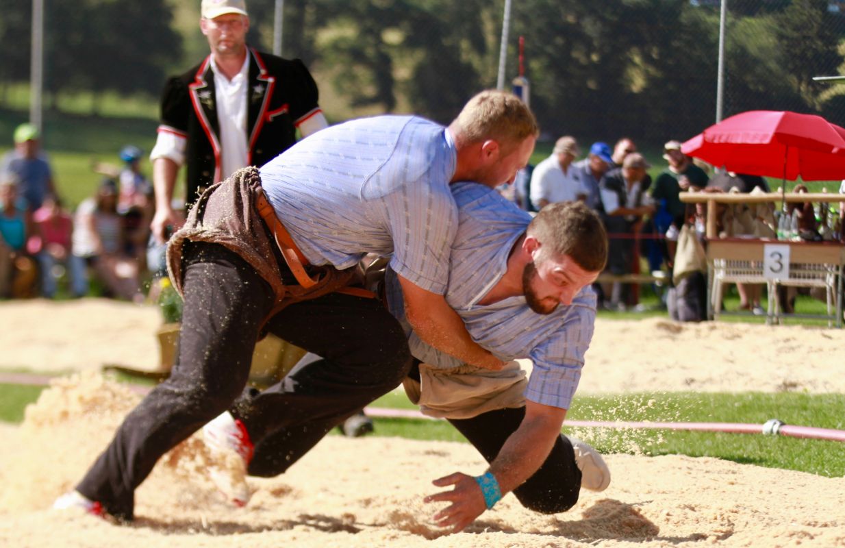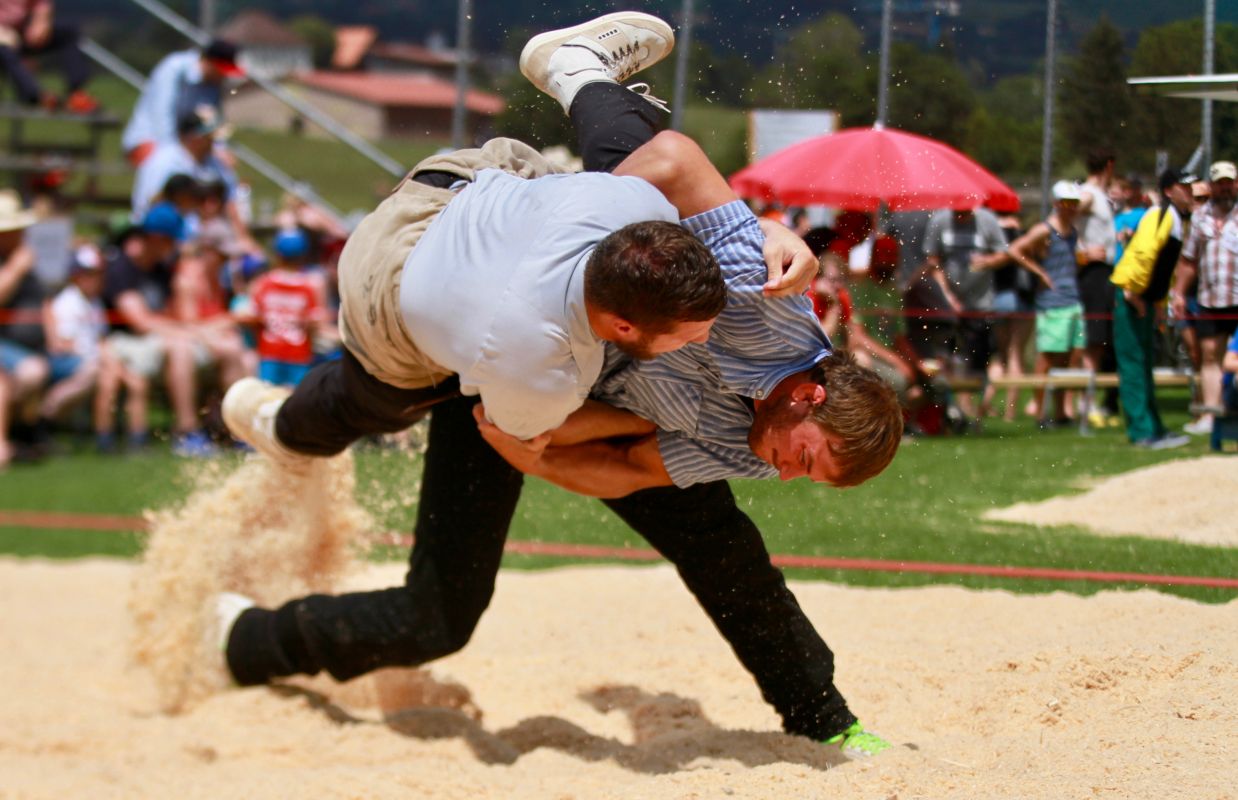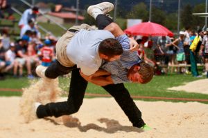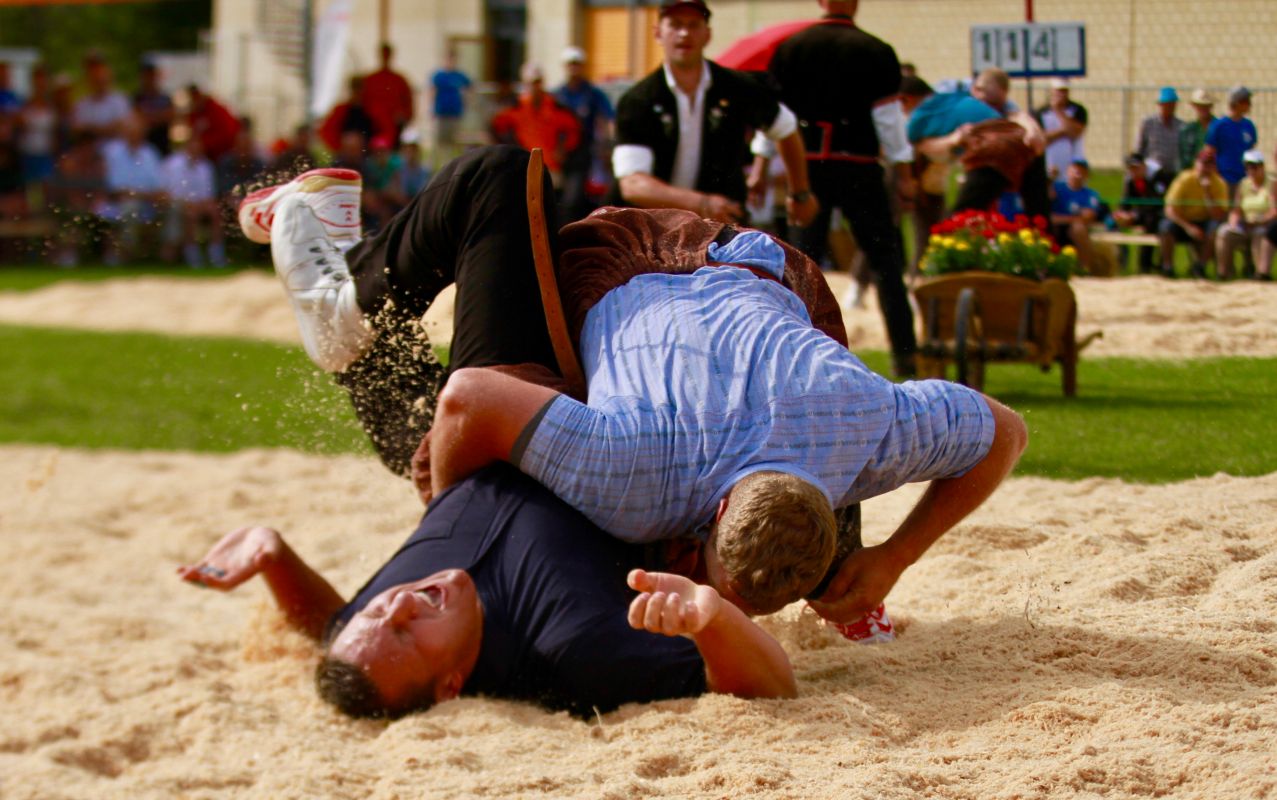 Benjamin Gapany de Marsens remporte la fête cantonale fribourgeoise en battant en passe finale le couronné fédéral Andreas Ulrich du club invité de Am Mythen, après une minute avec un puissant kurz.