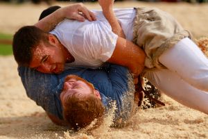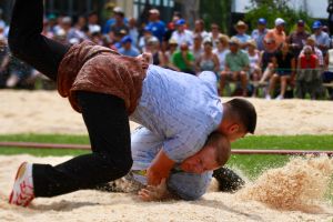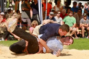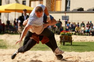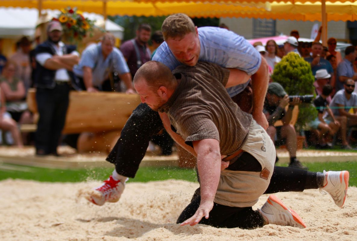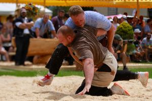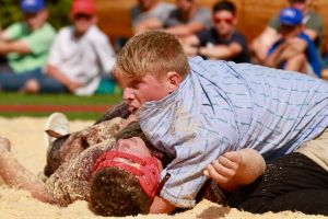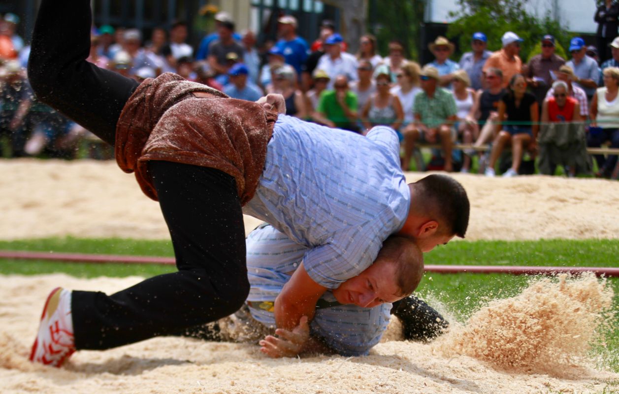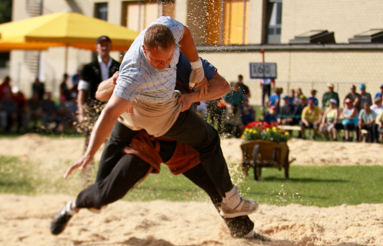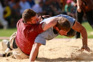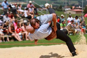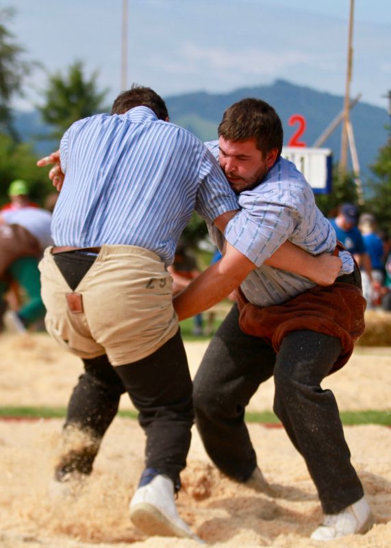 Benjamin Gapany de Marsens remporte la fête cantonale fribourgeoise en battant en passe finale le couronné fédéral Andreas Ulrich du club invité de Am Mythen, après une minute avec un puissant kurz.