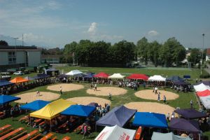 Beim 45. Baarer Buebeschwinget konnte bei sommerlichen Temperaturen die 335 Nachwuchsschwinger interessanten Schwingsport den 500 Zuschauern zeigen.