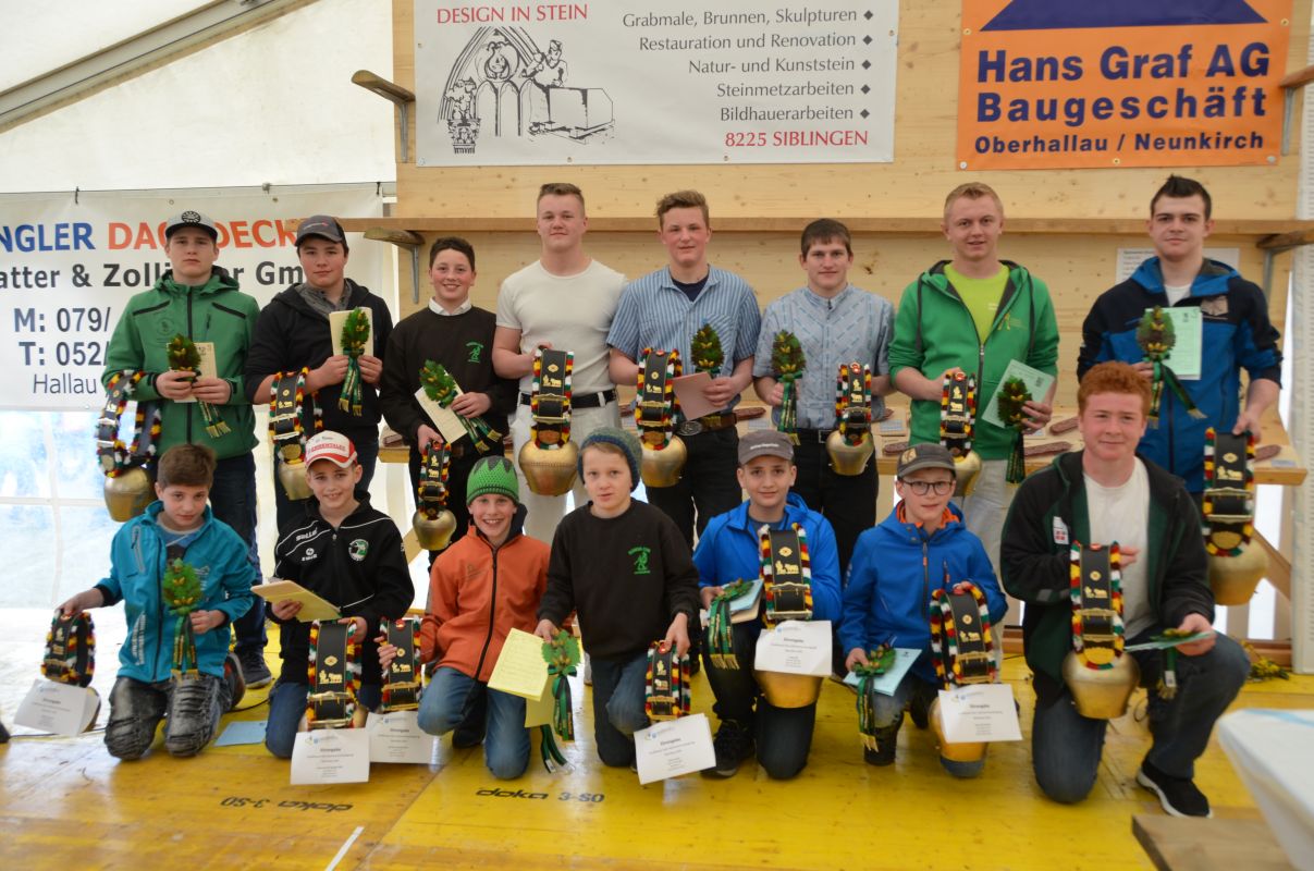 Einheitsgaben für die Nachwuchsschwinger und Glöggli für die Kategoriensieger