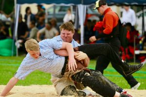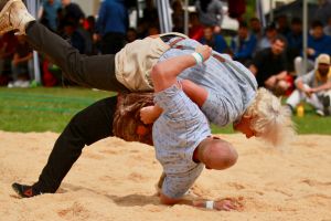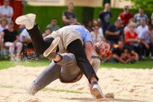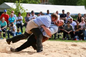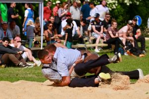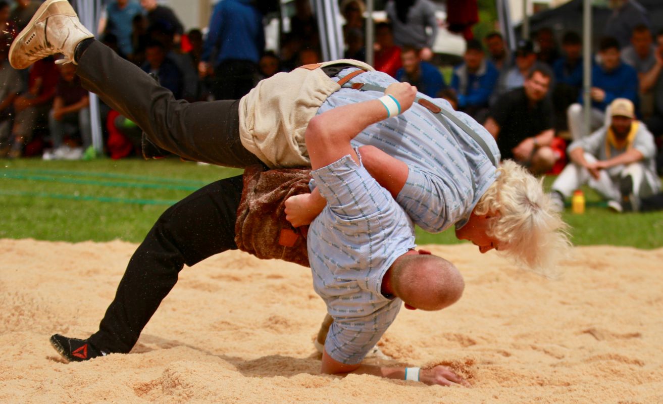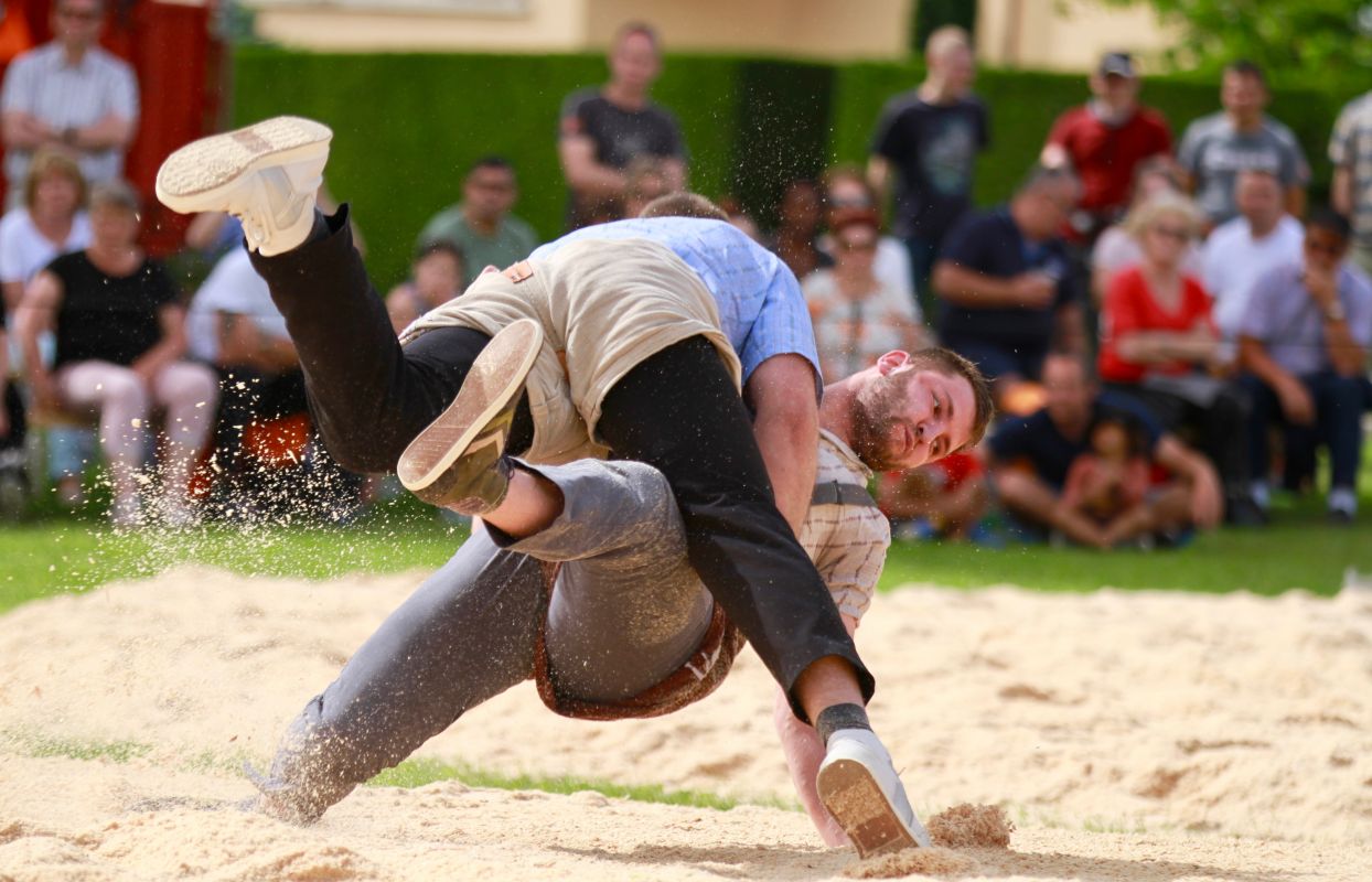 Benjamin Gapany de Marsens remporte la fête cantonale vaudoise en battant en passe finale Steven Moser. Après 2min55 Gapany tire un puissant kurz et met les épaules de son adversaire dans la sciure.