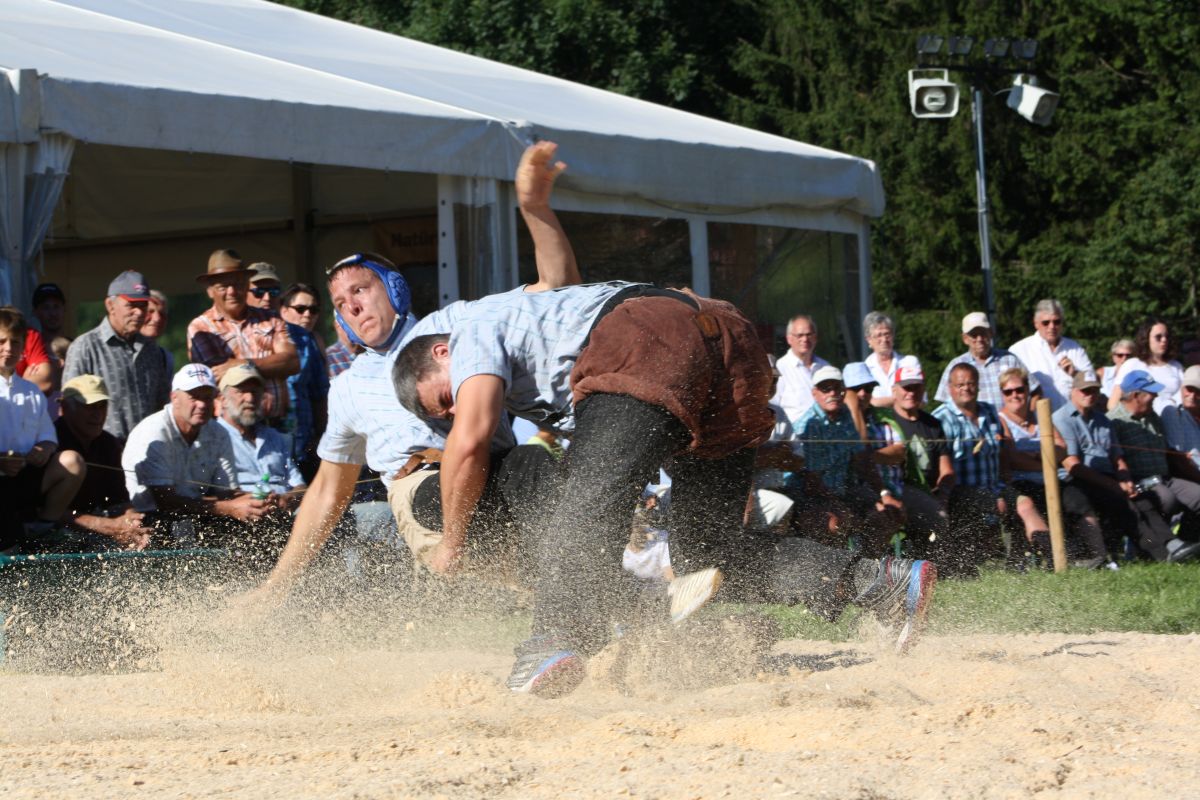 Vor über tausend Zuschauern gewinnt Samuel Giger das Thurgauer Sommerschwingfest im Hessenbohl oberhalb Lustdorf. Im Schlussgang bezwingt er seinen Klubkollegen Pius Näf nach kurzer Gangdauer.