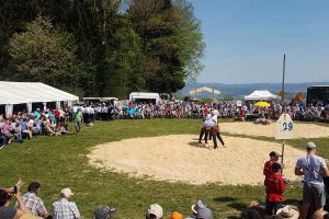 Nach gestelltem Schlussgang zwischen Joel Strebel und Mario Thürig gewinnt Joel Strebel das Schwingfest.