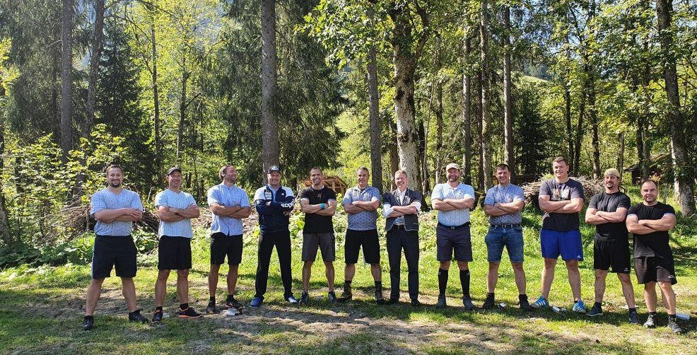 Die Steinstösser mit Erich Mauron OK-Präsident / Les lanceurs de pierre avec Erich Mauron, président du CO