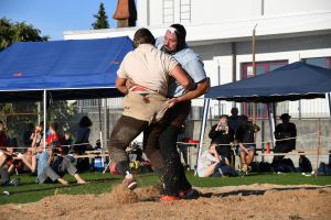 Der Schlussgang zwischen Bösch Daniel (dunkle Schwinghosen) gegen Alpiger Nick (Helle Schwinghosen) endet gestellt und Hasler Jimmy als lachender Dritter erbt den Sieg