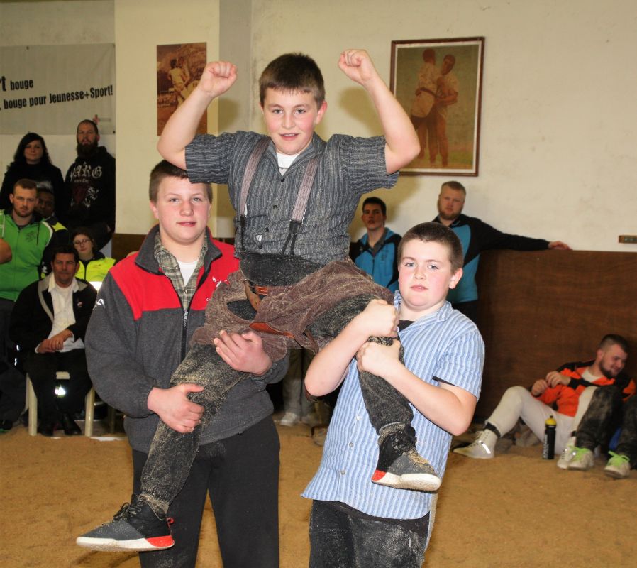 Une catégorie très disputée entre trois lutteurs ,Girard Noé de La Veveyse remporte la fête contre Suchet Maxime de Fribourg