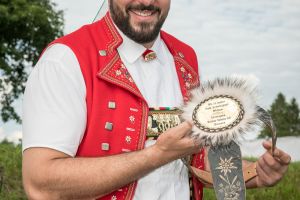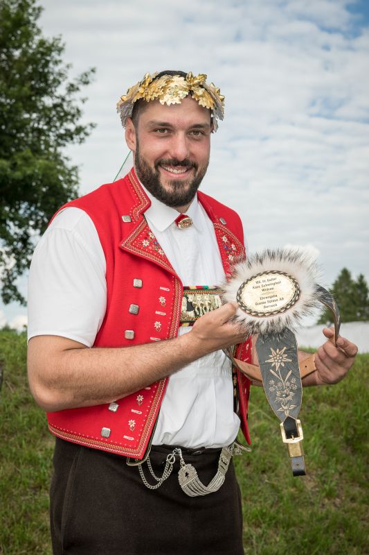 Er war der Favorit in Widnau und bestätigte es den ganzen Tag. Daniel Bösch siegt zum achten Mal am St. Galler Kantonalschwingfest was Rekord ist. Nebst dem Festsieg konnte sich der Zuzwiler seinen 100. Kranz aufsetzen lassen und gehört nun auch zum „100er Club“. Gestartet, mit viel Selbstvertrauen, besiegte der Sennenschwinger im ersten Gang den Appenzeller Eidgenossen Michael Bless. Sandro Schlegel aus dem Prättigau und Beda Arztmann aus dem Kanton Zürich mussten schnell die Niederlage gegen Bösch im zweiten und dritten Gang eingestehen. Zu stark war der Unspunnen Sieger für die ersten drei Schwinger die im Duell ihm gegenüber standen. Nach der Mittagspause fuhr Bösch seinen Siegeszug weiter und bodigte Martin Roth und Thomas Koch, beides Appenzeller, ohne Probleme. Somit stand er mit fünf Siegen souverän im Schlussgang. Die Erfolgsgeschichte wurde in Widnau dank dieser Leistung durch ein weiteres Kapitel ergänzt.