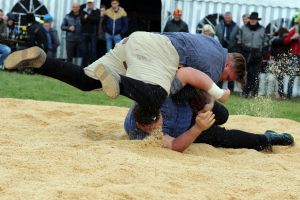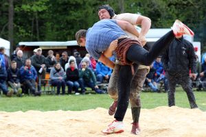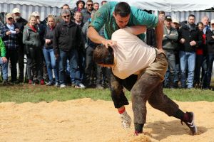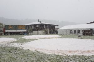 Die 59 gemeldeten Schwinger trotzen dem zwischendurch heftigen Schneefall. 850 Zuschauer unterstützen die Schwinger mit heftigem Applaus.