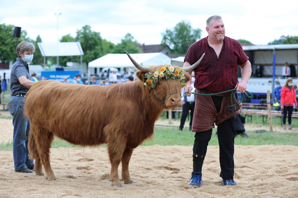 Rind «Bärbeli», ein schottisches Hochlandrind geboren am 6.7.2021 lockte dem Festsieger als Preis.