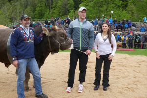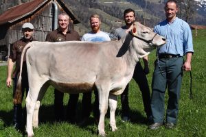 3. Preis Rind Grischa Star Granada mit Gabenchef Richard Arnold, OKP Hansueli Gisler, den beiden Gabenspender der Gebrüder Gisler Schattdorf AG und Züchter Richard Planzer
