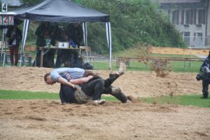 Fête Cantonale Vaudoise Actifs à Saint-George 9.Juin 2019 Sous l’organisation de Frédéric Rohrbach, chapeauté par le club de Lutte de Mont-Sur-Rolle, la fête cantonale Vaudoise de lutte, aurait plutôt fait envie aux grenouilles qu’aux lutteurs, puisque malheureusement il a plu des cordes toute la journée. Malgré cela 117 lutteurs se sont présentés pour les premières passes, dont quelques invités du club de Zurzach. A la fin des 5èmes passes nous trouvons Roch Vincent d’Estavayer en tête avec 48.25 Pts, à égalité avec Brodard Augustin. Suivent de près, Mollet Yvan d’Aigle, Gottofrey Luc de Lausanne, Rapin Forent d’Estavayer, Gapany Benjamin de La Gruyères, tous avec 47.75 Pts. La partie officielle sera organisée à l’intérieur de la salle au vu du temps extérieur, et les luttes ne seront pas arrêtées. Les passes à couronnes se joueront toujours sous une pluie battante ainsi que la passe finale qui opposera Roch Vincent d’Estavayer contre Brodard Augustin de Haute-Sarine.La passe finale sera de 12 minutes, mais les deux lutteurs sont déterminés à gagner leur passe en essayant chacun leur tour de déstabiliser son adversaire, avec diverses prises. Finalement à 7,40 min, Roch Vincent prend le dessus avec une manchette et gagne sa passe et ainsi la fête cantonale Vaudoise. 19 couronnes seront distribuées avec à relever deux nouveaux couronnés. Dufey Gil de Haute.Broye et Borcard Clovis de La Gruyère. Le lutteur de Mont-Sur-Rolle Stéphane Berthet a profité de cette fête pour mettre un terme à sa carrière de lutteur. 1 58.25S++o+++ Roch Vincent, S ** Constantine FREstavayer-le-Lac Couronne 2a 57.75 +o++++ Mollet Ivan, T * Ollon VD VDAigle Couronne 2b 57.75 o+++-+ Gapany Benjamin, S ** Marsens FR La Gruyère Couronne 3 57.50 -+++-+ Bächli Michael, S ** Würenlingen AGZurzach Couronne 4a 57.25 +++o++ Kramer Dorian, * Galmiz FR Kerzers/Chiètres Couronne 4b 57.25 ++-+-+ Kramer Lario, S ** Galmiz FR Kerzers/Chiètres Couronne 4c 57.25 ++-+o+ Matthey Mickaël, S ** Gingins VDMont-sur-Rolle Couronne 4d 57.25 o++-++ Haenni Stéphane, S ** Mézières VD VDHaute-Broye Couronne 4e 57.25 +-++o+ Duplan Steve, S ** Ollon VD VDAigle Couronne 5a 57.00S+o+++o Brodard Augustin, S ** La Roche FR FRHaute-Sarine Couronne 5b 57.00 -+++-+ Piemontesi Pascal, S ** Eclépens VDMont-sur-Rolle Couronne 5c 57.00 -++-++ Gottofrey Marc, S ** Echallens VDLausanne Couronne 6a 56.75 -+++o+ Lerch Jimmy, S * Crans-près-Céligny VDMont-sur-Rolle / NyonCouronne 6b 56.75 +o++-+ Hayoz Quentin, S * La Roche FR FR Haute-Sarine Couronne 6c 56.75 o+++o+ Dufey Gil, S Les Thioleyres VDHaute-Broye Nouveau couronné 6d 56.75 o++o++ Borcard Clovis, S Grandvillard FR La Gruyère Nouveau couronné 7a 56.50 -++o+- Ledermann Michael, S * Mamishaus FR La Gruyère Couronne 7b 56.50 -+o+-+ Derron Cédric, S * Sugiez FR Kerzers/Chiètres Couronne 7c 56.50 +-+o+o Rapin Florent, * Corcelles-près-PayerneFR Estavayer-le-Lac Couronne