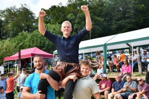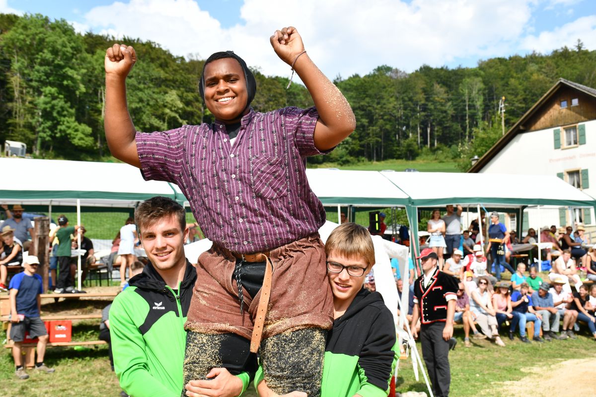In der mittleren Kategorie setzte sich im Schlussgang Lüscher Sinisha vom Schwingklub Olten mit einem Kurz gegen den ebenfalls einheimischen Scherz Valentin durch. Er durfte sich von seinen Klubkameraden auf die Schultern stemmen lassen.