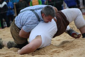 Im Schlussgang bezwingt Samuel Giger, Ottoberg, Beni Notz aus Güttingen mit Überdrücken am Boden nach 4.27 Min.