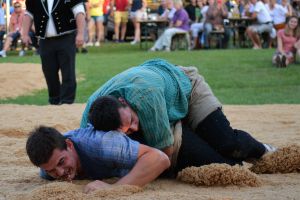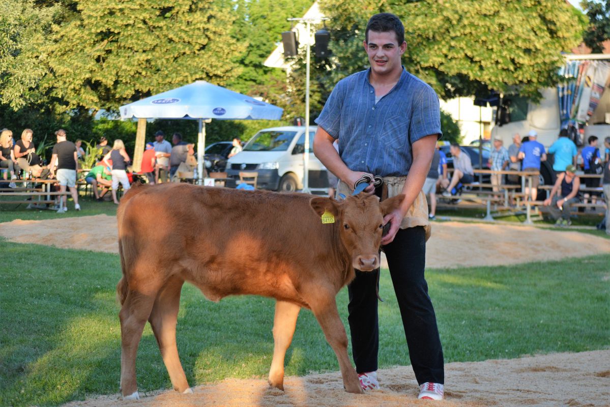 Döbeli Andreas konnte seine Leistungen vom vergangenen Sonntag am Nordostschweizer Schwingfest, bestätigten und schaffte mit fünf gewonnen Gängen den Einzug in den Schlussgang. Ebenfalls konnte Strebel Joel an seinen Saisonleistungen anknüpfen und schaffte den Einzug in den Schlussgang mit ebenfalls fünf gewonnen Gängen, einen viertel Punkt hinter Döbeli. Diese Schlussgangpaarung versprach für die rund 1500 Zuschauer einen spannenden Schluss. So zeigten sich die beiden Freiämter über die zwölf Minuten, trotz der abendlichen Wärme, nicht zurückhaltend. Trotz den letzten Anstrengungen beider konnte kein Resultat erzielt werden. Dank der Maximalnote für den Gestellten konnte Döbeli Andreas den Tagessieg hohlen und das Siegesrind Melina entgegennehmen.