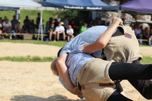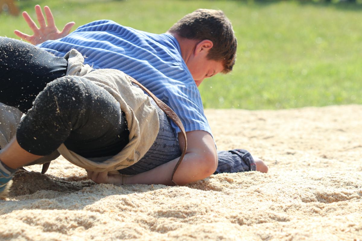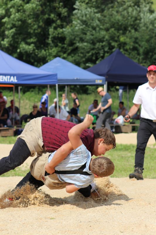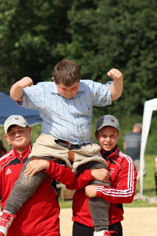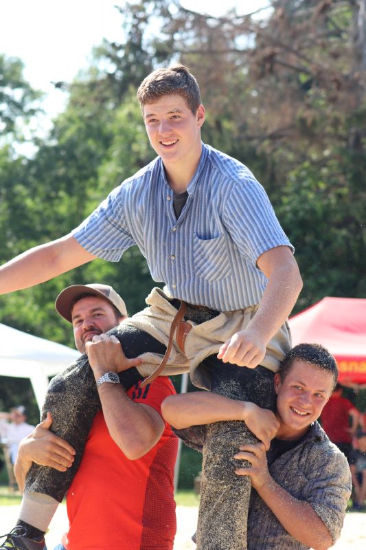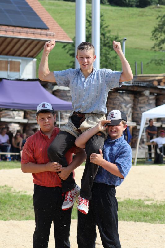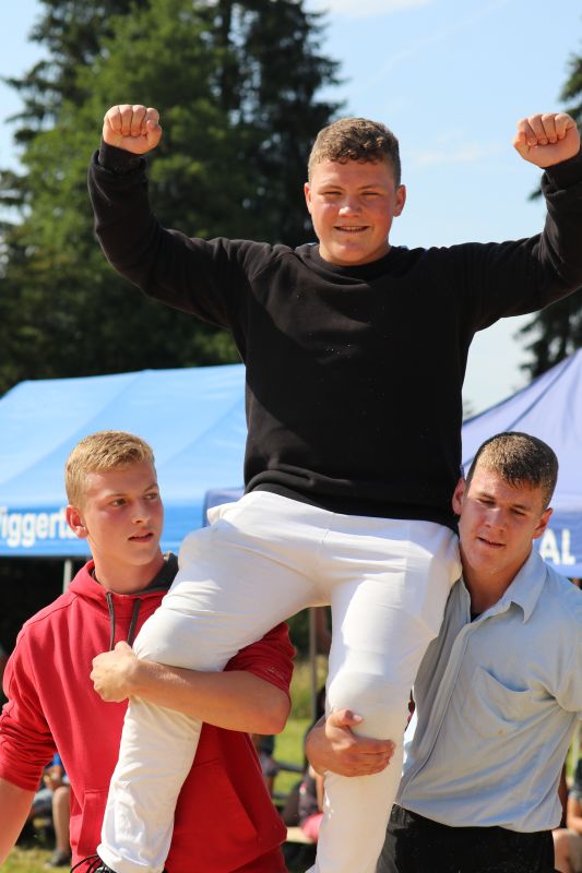Die beiden 16 - jährigen Urner Bissig Lukas und Betschart Roger standen sich im Schlussgang gegenüber. Bereits nach wenigen Sekunden konnte Bissig Lukas seinen Kamaraden ins Sägemehl betten und sich in der ältesten Kategorie als Sieger feiern lassen.