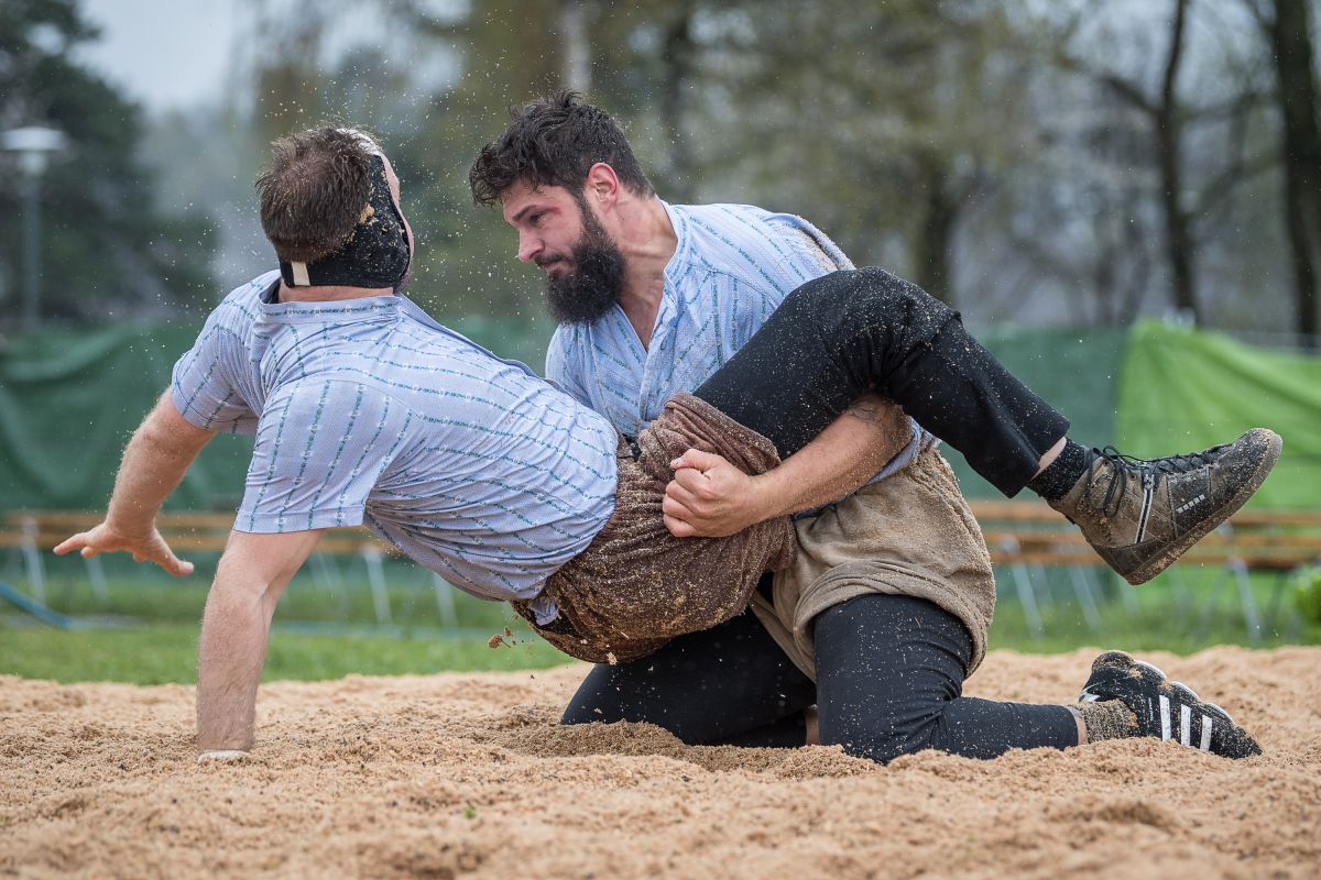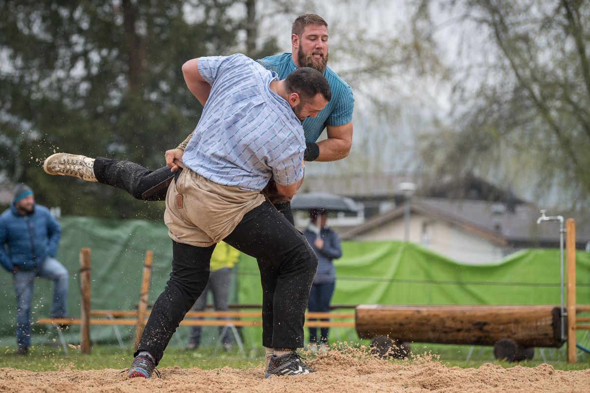 Schmerikon, 14.4.19, Schwingen - Rapperswiler Verbandsschwingfest. Rychen Roger, (H, Mollis) gegen Boesch Daniel, (Zuzwil SG). Lorenz Reifler