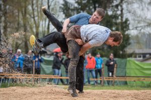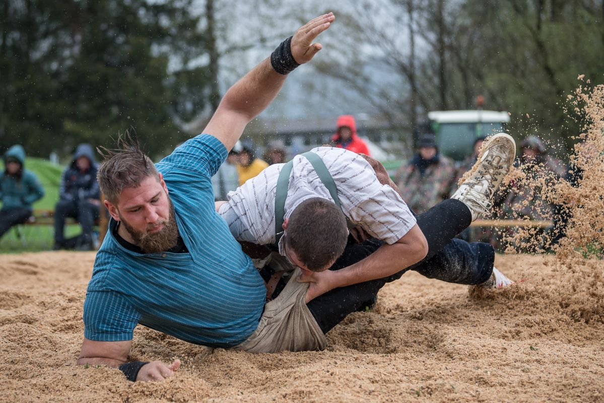 Schmerikon, 14.4.19, Schwingen - Rapperswiler Verbandsschwingfest. Roth Martin (O, Herisau) gegen Bernold Christian (Walenstadt). Lorenz Reifler