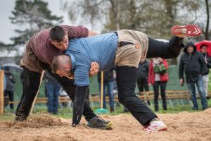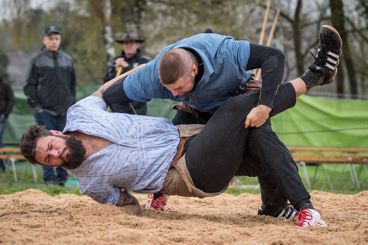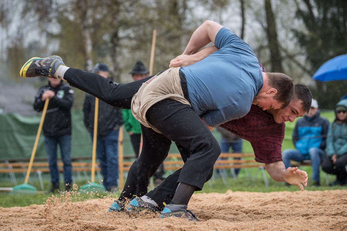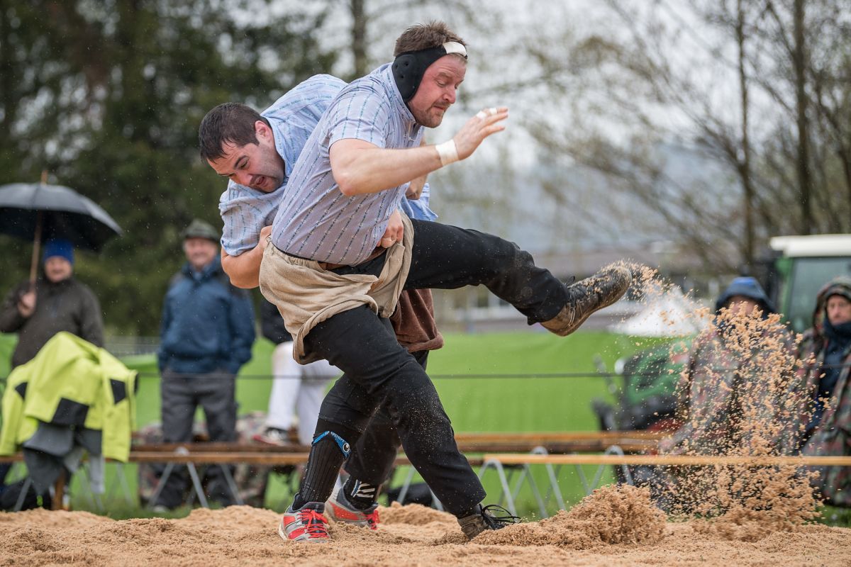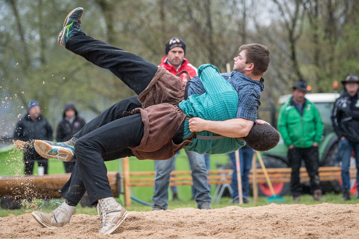 Schmerikon, 14.4.19, Schwingen - Rapperswiler Verbandsschwingfest. Roth Martin (O, Herisau) gegen Hegner Ueli (Siebnen). Lorenz Reifler
