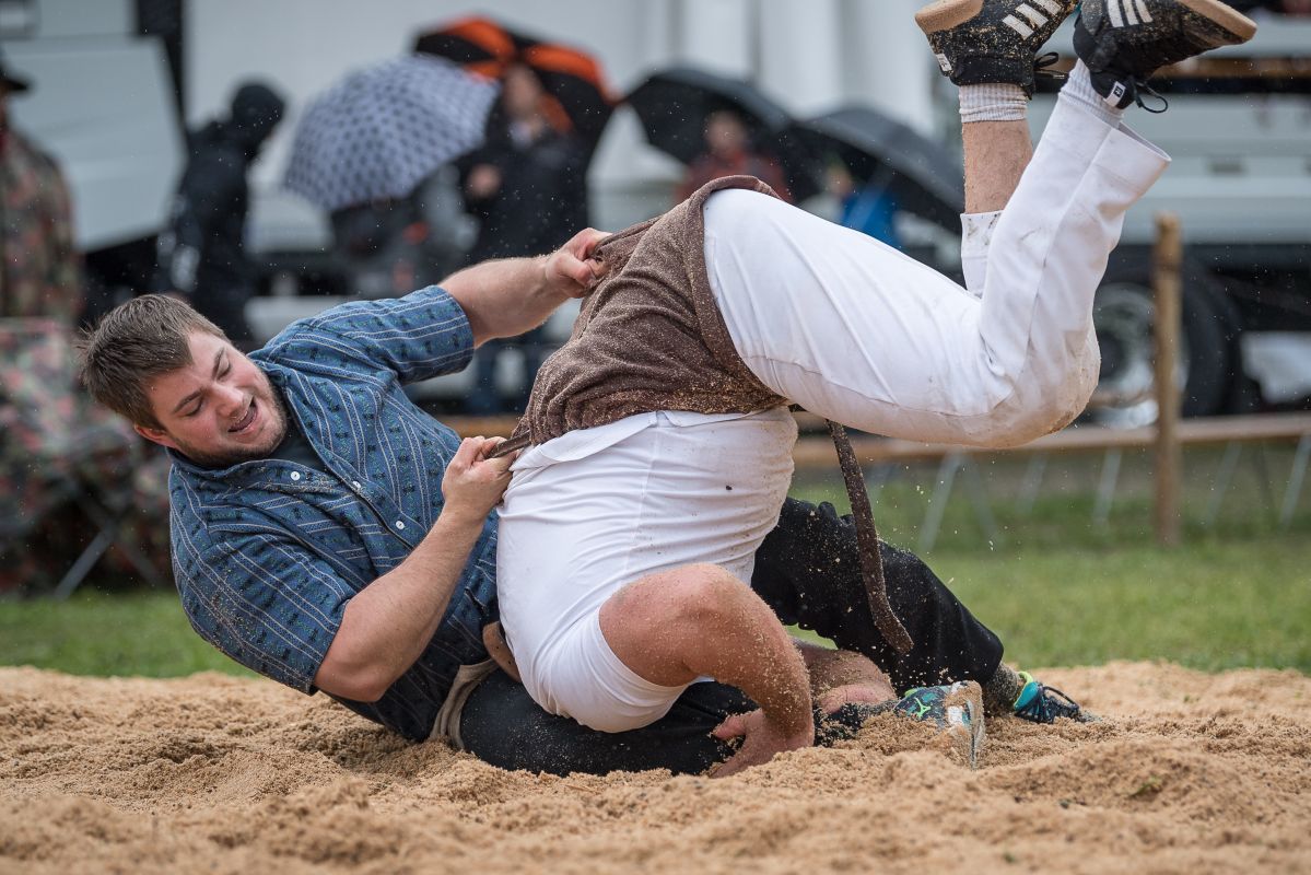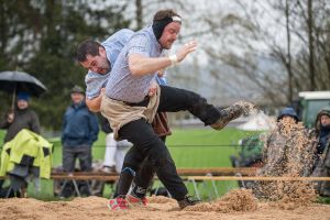 (PS) Der zweifache Eidgenosse Daniel Bösch wurde seiner Favoritenrolle an diesem verregneten Sonntag in Schmerikon gerecht. Im Anschwingen traf der Toggenburger auf den Glarner Eidgenossen Roger Rychen und musste diesen Gang stellen. Im Anschluss konnte der 135 Kilo-Mann allerdings den Ausserschwyzer Joel Kessler, sowie den Alpthaler Markus Effinger und das Appenzeller Jungtalent Roman Wittenwiler aus Schwellbrunn rasch bezwingen. Um die Schlussgangqualifikation bodigte der Toggenburger Senne auch noch Thomas Kuster mit Höchstnote und sicherte sich so den Schlussgang. In diesem stand ihm Vorjahressieger Michael Bless gegenüber, welcher sich durch vier Siege über Dominik Oertig, Michael Rhyner, Pirmin Gmür und Alex Schuler sowie einer Niederlage im vierten Gang gegen Tobias Riget ebenfalls mit gleicher Punktzahl für den Schlussgang qualifizieren konnte. Bless (Sieger 2011 und 2018) musste sich allerdings gegen Bösch (Sieger 2014/2015) nach intensivem Kampf geschlagen geben. «Die kalten Temperaturen heute haben mir nichts ausgemacht. Nach dem ersten Gang hatte ich etwas kalte Hände, aber dies hinderte mich nicht beim Schwingen», grinste der glückliche Sieger nach dem Fest und ergänzte: «Heute fiel es mir leicht und ich hatte in keinem Gang das Gefühl, mich zu verausgaben».