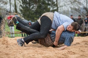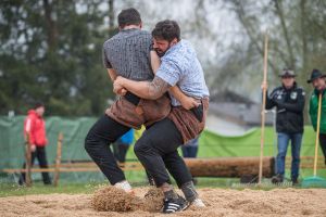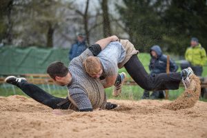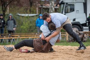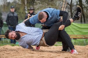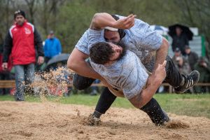 Schmerikon, 14.4.19, Schwingen - Rapperswiler Verbandsschwingfest. Wittenwiler Roman, (O, Schwellbrunn) gegen Geisser Lars (Mörschwil). Lorenz Reifler