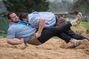 Schmerikon, 14.4.19, Schwingen - Rapperswiler Verbandsschwingfest. Bless Michael, (O, Gais) gegen Rhyner Michael (Flawil). Lorenz Reifler