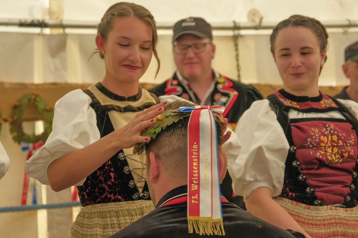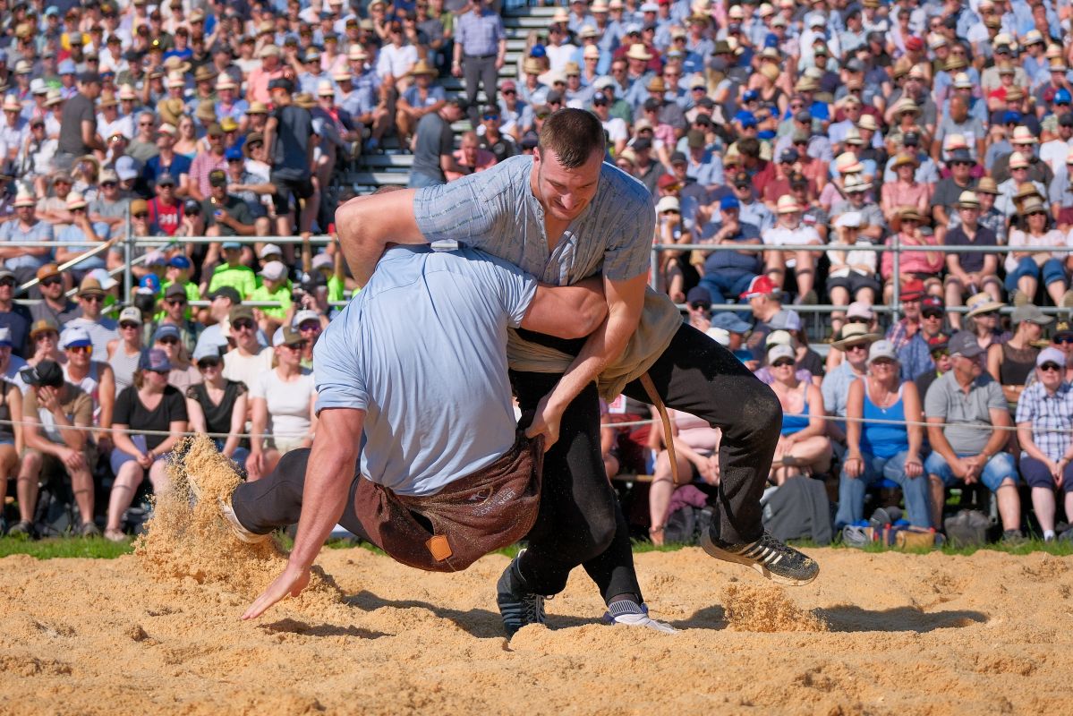 Bei strahlendem Sonnenschein fand die 73. Ausgabe des traditionellen Weissenstein-Schwinget statt. Weniger Glück hatte das Organisationskomitee bei den Vorbereitungen: Ein durchnässter Boden erschwerte den Aufbau und machte den Einsatz schwerer Maschinen unmöglich. Michael Guldimann, OK-Präsident des Weissenstein-Schwinget, bezeichnete die Situation in seiner Festansprache als Zusatzschlaufe für das OK. Auch die Zuschauenden mussten sich anpassen. Sie konnten nicht wie gewohnt auf dem Berg parken, sondern mussten ihre Autos im Tal stehen lassen und die 1951 eröffneten und 2014 erneuerten Seilbahn von Oberdorf auf den 1'284 Meter hohen Solothurner Hausberg nehmen. Dies funktionierte einwandfrei: Alle Schwinger, Funktionäre und die 4'500 Zuschauenden waren rechtzeitig auf ihren Plätzen.